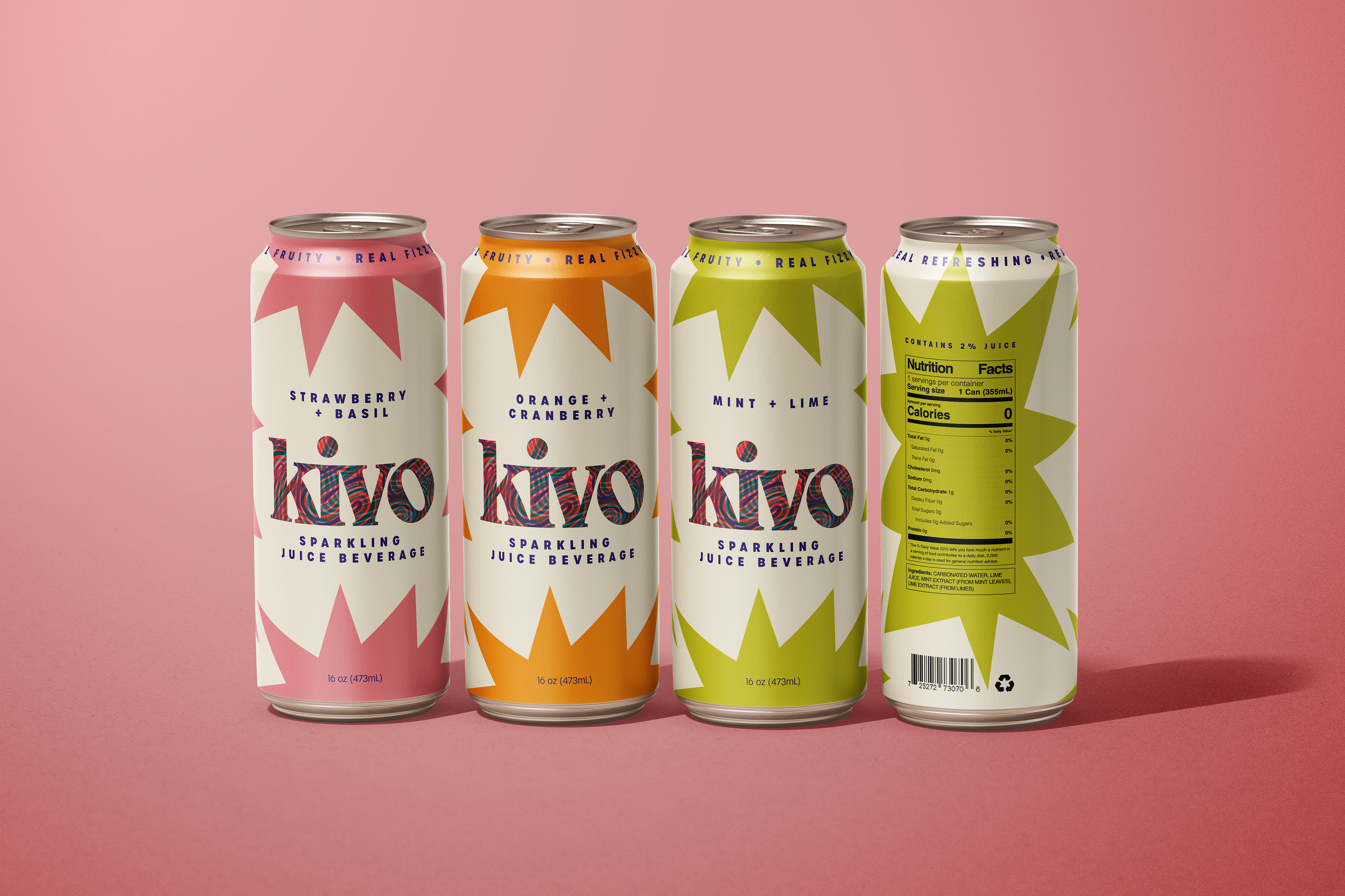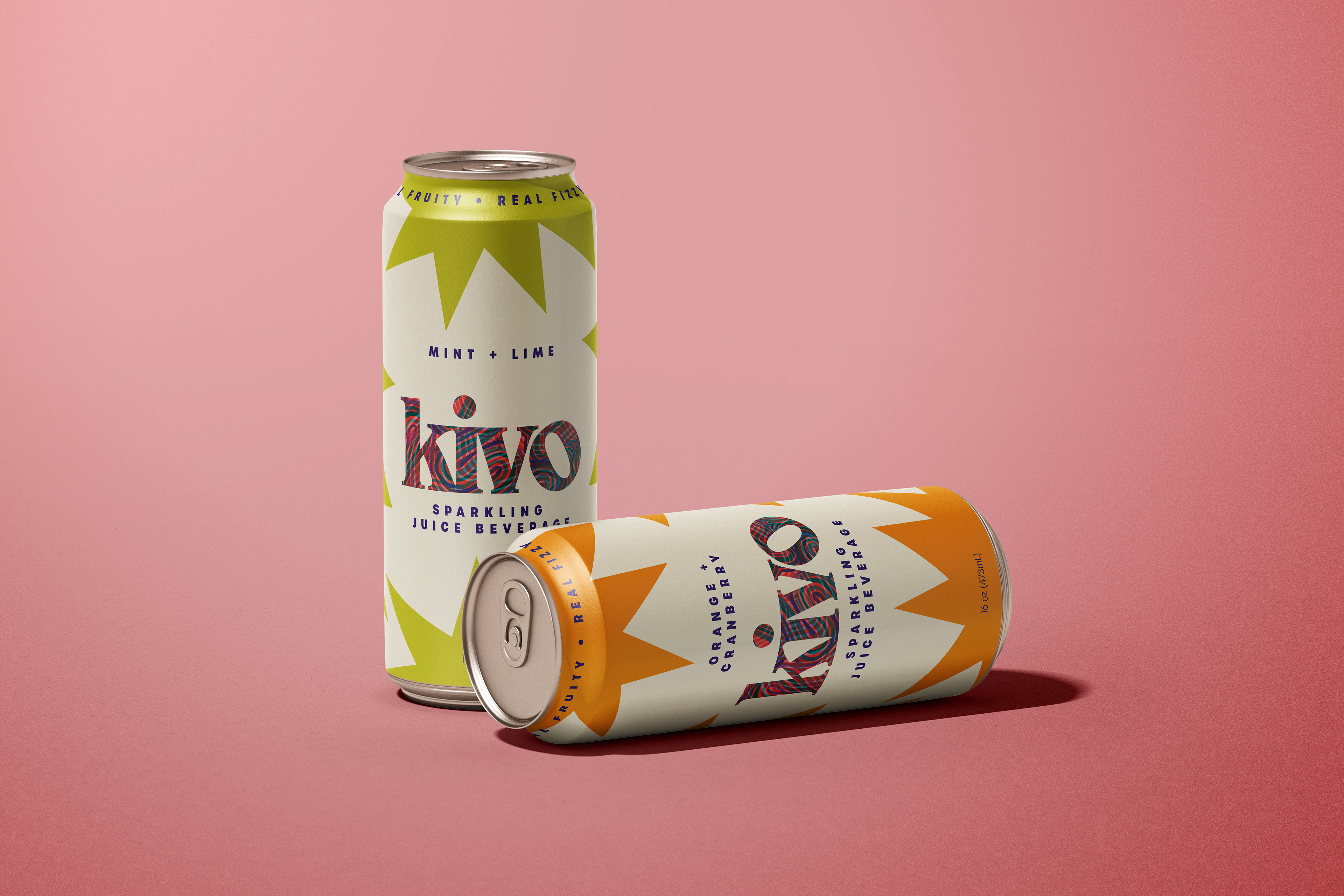 This is a packaging concept for a sparkling juice drink called Kivo. I wanted it to feel bright, fun, and easy to spot on a shelf, so I built the design around bold colors and a simple, punchy graphic shape that wraps around the can. Each flavor gets its own color to keep things playful, while the overall layout stays consistent to tie the lineup together. I focused on keeping the typography straightforward and letting the color and pattern do most of the talking. The goal was to create something that feels fresh and a little unexpected, but still clear and approachable.